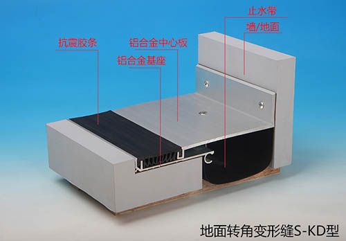 金属盖板型地坪变形缝——增加盖板厚度,提高承载能力,采用滑杆确保变形缝装置变位时仍能保持中心及原有位置。